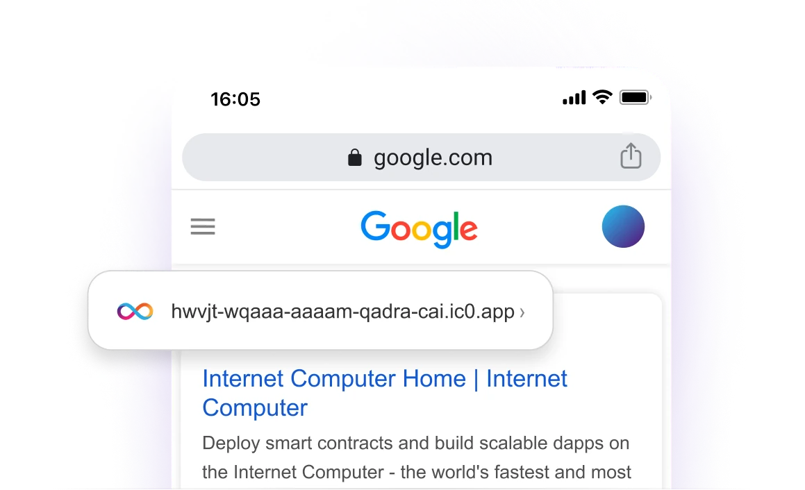Search engines like Google can’t index smart contracts running on other blockchains. As developers have to use centralized cloud providers to store the frontends, at least those become searchable. A compromise. The Internet Computer hosts smart contracts that can directly be indexed by all popular search engines. No frontends on public cloud required. This is how true Web3 works.