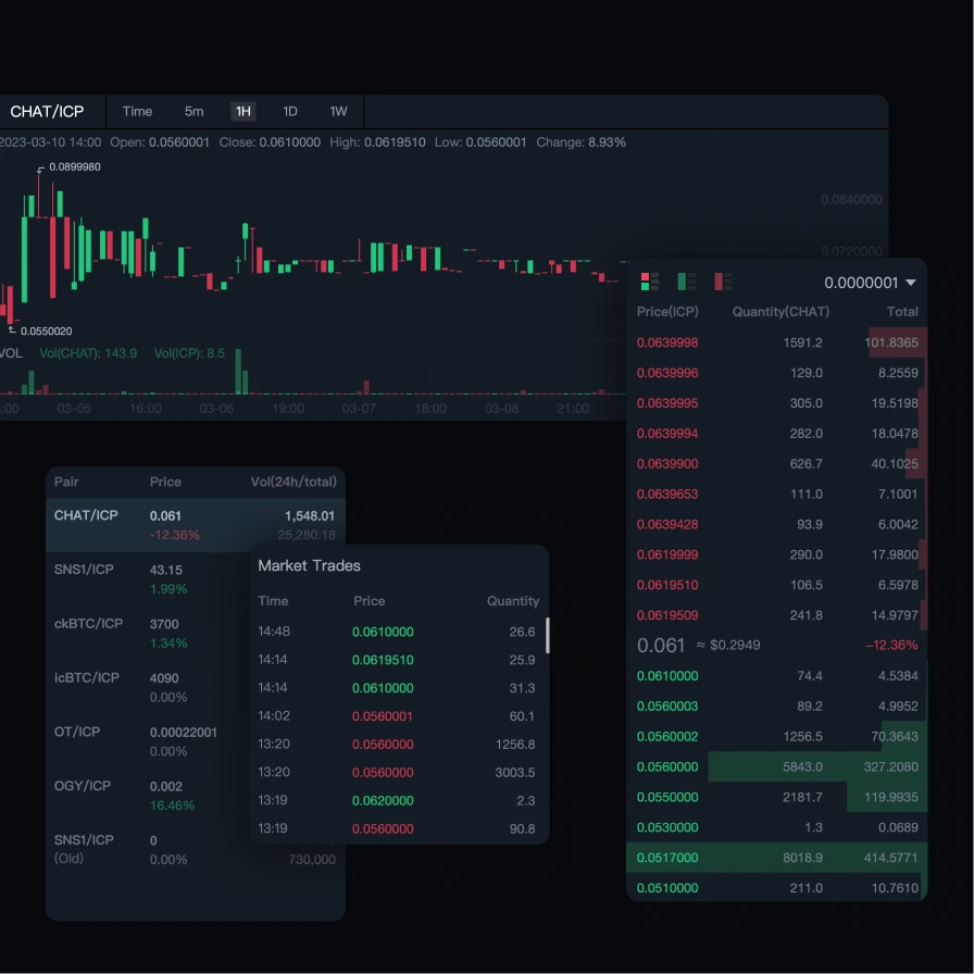 ICDex provides the world’s first fully onchain order book DEX. Create limit orders or swap tokens instantly with complete transparency and decentralization. ckBTC/ckETH swaps now possible.
