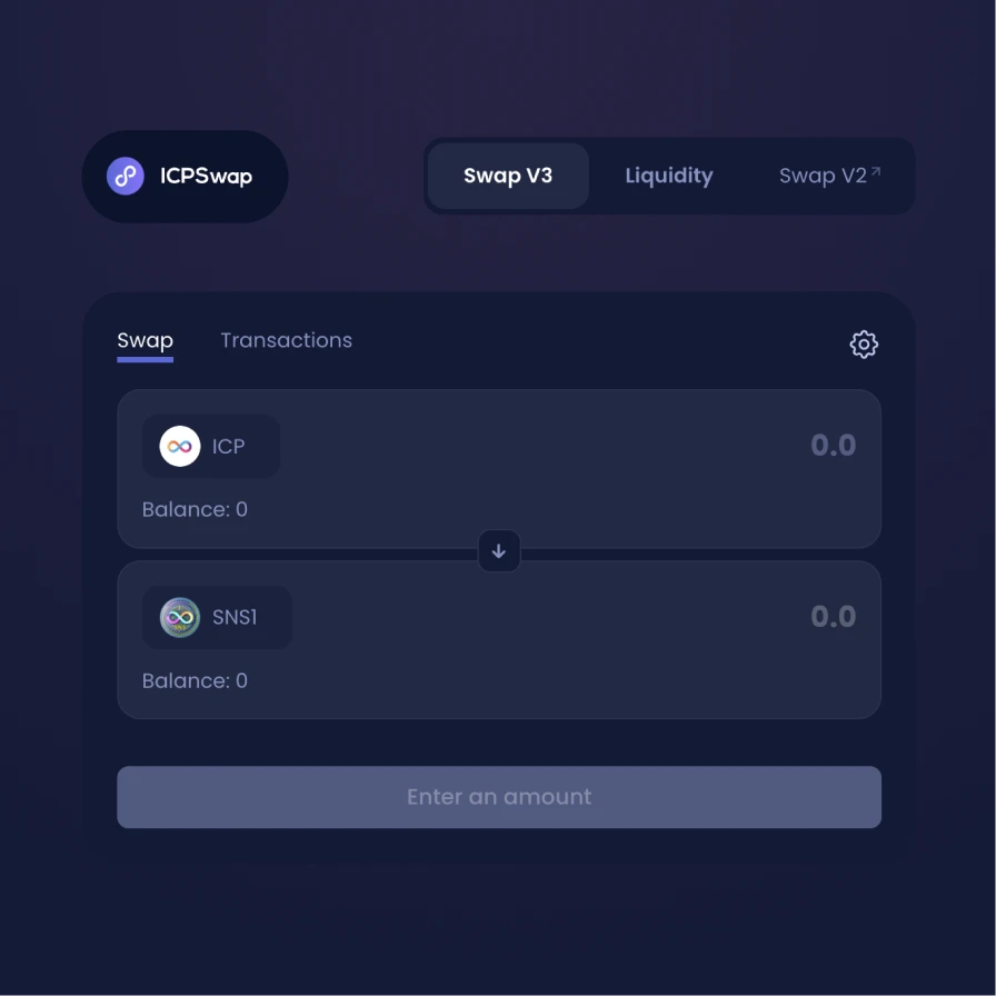 One-stop access to decentralized finance and the first DEX on the Internet Computer to become an SNS DAO. Swap tokens, earn fees as a liquidity provider and participate in governance and decision-making through Sonic token membership. Now supports ckBTC/ckETH pair.